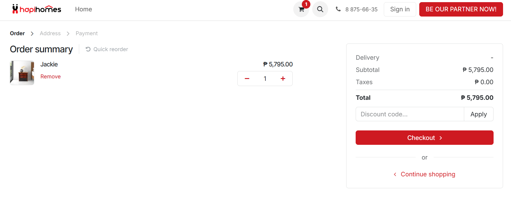 2. Browse and select items that you want on the shop page: https://www.hapihomes.ph/shop choose your preferred options ( Size, color and Quantity ) and click "Add to Cart"